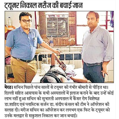 Dr. Sandeep Kansal ( Plastic Surgeon Specialist  ) And Dr. Shaaid ( Cancer Specialist   )Save The Life Of Patient By Removing The Tumor Of 1 Feet From His Anal In Subharti Hospital.